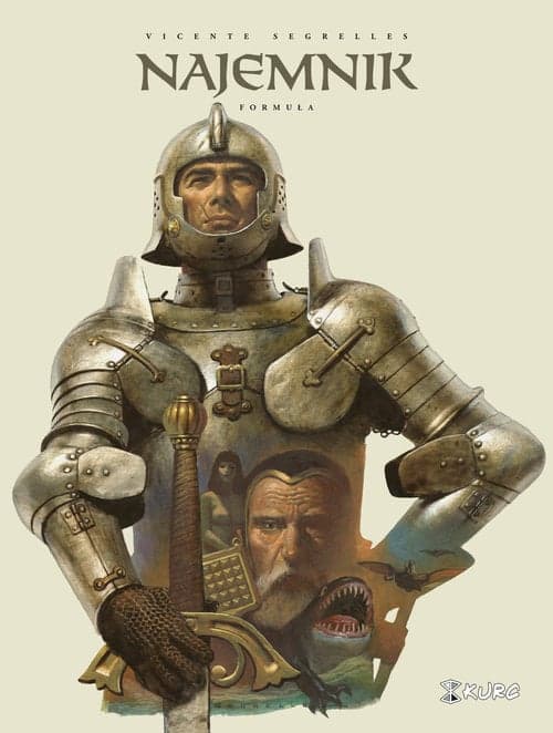 Najemnik eskortuje alchemika Clausta w wyprawie na Wielką Lodową Równinę. Za niebezpieczną misję otrzymuje sowitą zapłatę: nową zbroję i broń. Jednak Claust kradnie tajemną formułę oraz okazuje się przebiegłym i pozbawionym skrupułów nikczemnikiem. Vicente Segrelles - hiszpański malarz i ilustrator znany w Polsce dotychczas z okładek książek i czasopism - przedstawia fascynujący świat fantasy. Segrelles tworzy doskonałą iluzję za pomocą farb olejnych. Dzięki oryginalnej technice komiks wyróżnia się wyśmienitym wyczuciem koloru, perfekcyjnymi proporcjami postaci i niesamowitą atmosferą. Na planszach ożywają smoki, legendarne stwory i piękne kobiety. Zanurzamy się w nierealnej opowieści, która niczym mit fascynuje, ale również wywołuje strach i dreszcz. Najemnik to piękny i wspaniały komiks, który przywraca cudowne emocje i przyjemność z podziwiania obrazów. Federico Fellini