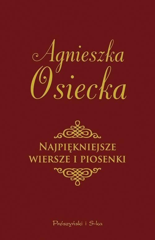 Wybór najpopularniejszych i najpiękniejszych piosenek oraz wierszy polskiej poetki! Agnieszka Osiecka miała wrodzony talent do pisania wierszy, które stawały się od razu chwytliwymi przebojami. Śpiewają je już od dziesięcioleci kolejne pokolenia, a ostatnio przypomnieli je publiczności na nowo m.in. Kasia Nosowska, Stanisław Soyka, Grabaż i Strachy na Lachy oraz zespół Raz Dwa Trzy. W niniejszym zbiorze, wśród kilkuset lirycznych pereł, znajdują się tak znane utwory, jak m.in.: "Niech żyje bal!", "Oczy tej małej", "Małgośka", "Piosenka o okularnikach", "Na zakręcie", "Czy te oczy mogą kłamać?", "Kochankowie z ulicy Kamiennej", "Chwalmy Pana", "Uciekaj, moje serce". Wybór wierszy i piosenek zamieszczonych w niniejszym tomie oparto na dwutomowym wydaniu wierszy zebranych Agnieszki Osieckiej, które ukazało się nakładem wydawnictwa Prószyński i S-ka w roku 2009 pt. "Nowa miłość – wiersze prawie wszystkie". Zachowano przyjęty wówczas chronologiczny podział na tomiki oraz alfabetyczny układ wierszy, rezygnując z datowania oraz przypisów. Agnieszka Osiecka (1936-1997) – polska poetka, autorka tekstów piosenek, pisarka, reżyser teatralny i telewizyjny, dziennikarka. Od 1954 roku związana była ze Studenckim Teatrem Satyryków (STS), gdzie zadebiutowała jako autorka tekstów piosenek. Prowadziła w Polskim Radiu Radiowe Studio Piosenki, które wydało ponad 500 piosenek i pozwoliło na wypromowanie wielu wielkich gwiazd polskiej estrady. Od 1994 roku była związana z Teatrem Atelier w Sopocie, dla którego napisała swoje ostatnie sztuki i songi. Dorobkiem Agnieszki Osieckiej zajmuje się założona przez córkę poetki Agatę Passent Fundacja Okularnicy. Pośmiertnie została odznaczona przez Prezydenta RP Krzyżem Komandorskim Orderu Odrodzenia Polski.