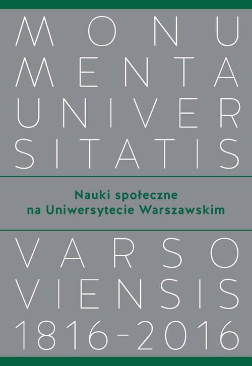 Dzieje nauk społecznych w Uniwersytecie Warszawskim zaprezentowane w niniejszym tomie obejmują pięć głównych działów: ekonomię, nauki polityczne, psychologię, socjologię i prawo. Autorzy poszczególnych tekstów - znawcy historii swoich dziedzin - piszą o procesach ich kształtowania na poziomie akademickim i o przemianach, jakim podlegały w ramach Uniwersytetu. Odnoszą się również do najważniejszych nurtów Social sciences at the University of Warsaw History of the social sciences at the University of Warsaw presented in the volume includes five main fields: economics, political sciences, psychology, sociology and law. The authors of the texts - specializing in the history of their disciplines - write about the process of their development on the academic level and about the changes they have been subjected within the University. The most important research currents, as well as the most distinguished representatives of the disciplines and their achievements are also reported.