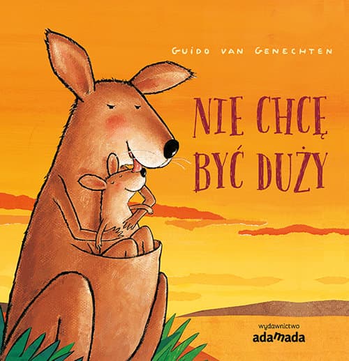 Najwyższy czas, żeby wyskoczyć z maminej torby. Najwyższy czas przestać być dzidziusiem. Najwyższy czas, żeby poznawać świat. Dla wszystkich małych kangurków, które kurczowo trzymają się mam i wcale nie chcą być duże. Guido van Genechten w 1998 roku otrzymał międzynarodową Nagrodę Miasta Hasselt jako najlepszy ilustrator za swoją autorską książkę ""Rikki"". Ta nagroda zapoczątkowała jego światową karierę, a Guido stworzył wiele bestsellerowych książek. Został wyróżniony licznymi nagrodami, między innymi w roku 2007 Nagrodą Reader’s Digest dla najlepszego ilustratora książek dla dzieci (za książkę ""Nie chcę być duży""). Czytanie dzieciom na głos sprawia im radość, wzbogaca słownictwo i pomaga kształcić dobrą dykcję. Uwrażliwia, rozbudza wyobraźnię, uczy logicznego myślenia oraz wyrabia nawyk czytania na całe życie. Czy Wasze pociechy słuchały już naszych książek? Wystarczy pobrać z App Store albo Google Play na smartfona bezpłatną aplikację Adamada czyta dzieciom i już! A kto czyta nasze książki? Książkę „Nie chcę być duży” Eryk Lubos!