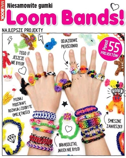 Książka z ponad 55 wzorami kształtów, jakie można wyczarować z gumek Loom Bands – bransoletki, maskotki, koniki, a nawet parasolka. To wszystko w jednej książce, bogato ilustrowanej, ze zdjęciami instruktażowymi