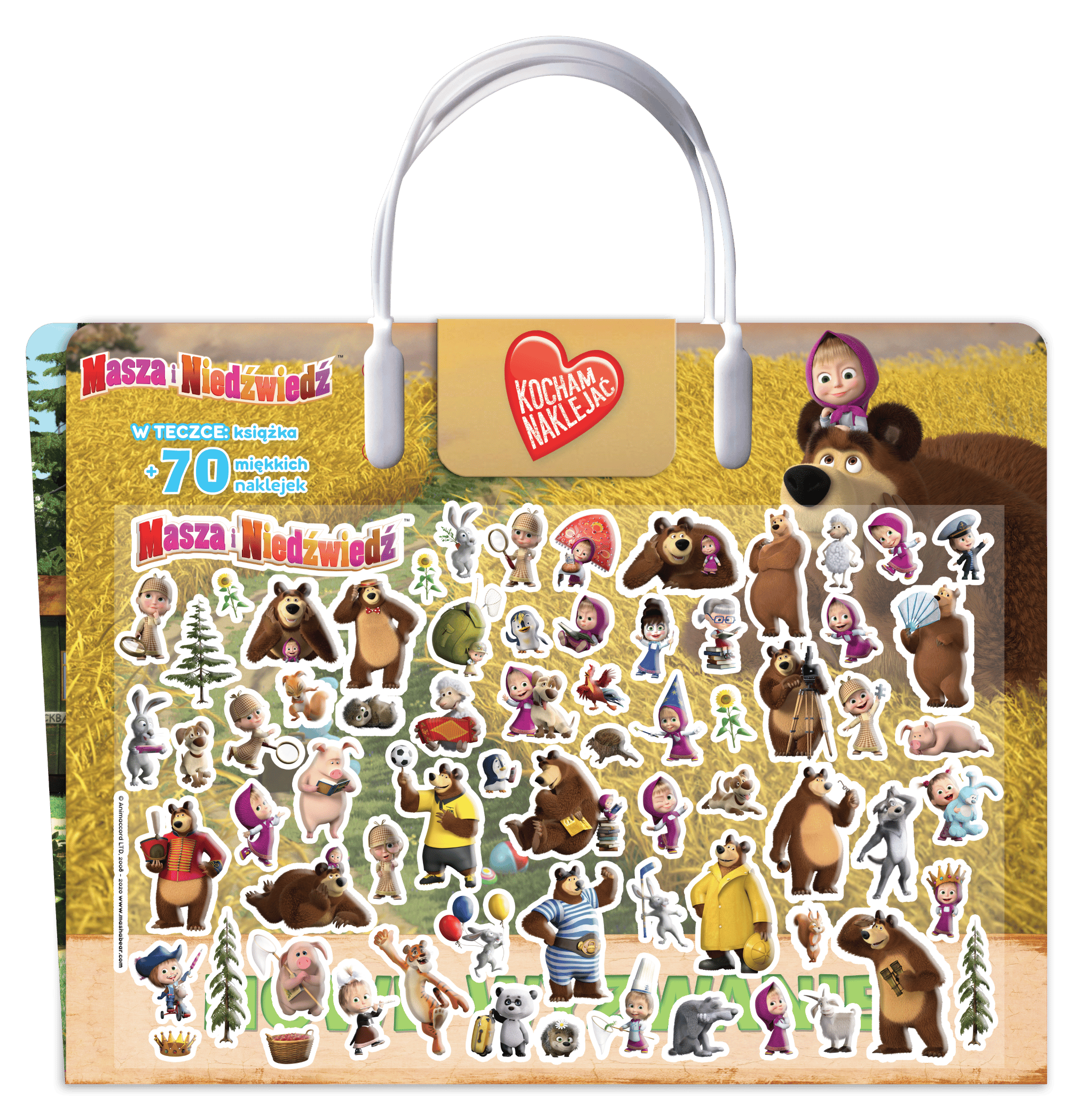 Fantastyczny zestaw zawierający teczkę z praktyczną rączką, arkusz wypukłych, kolorowych naklejek (ok. 70 naklejek) oraz ciekawe opowiadanie z ulubionymi bohaterami. Wspaniała zabawa z Maszą i niedźwiedziem gwarantowana!