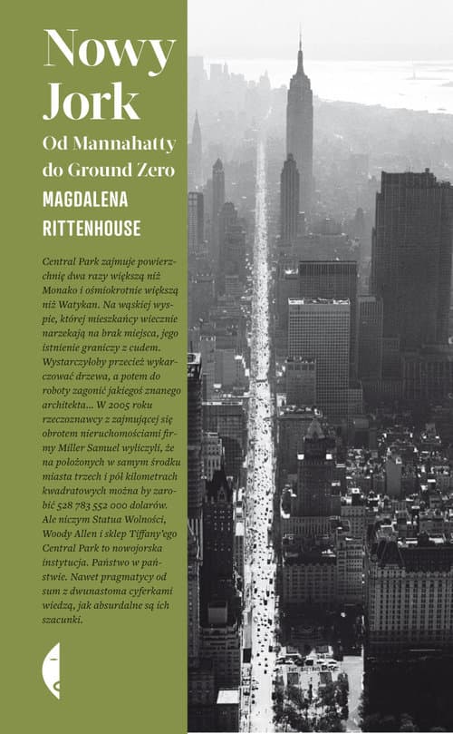 Czy holenderscy osadnicy naprawdę kupili Manhattan od Indian za garść paciorków? Czemu budową Brooklińskiego Mostu kierowała kobieta bez inżynieryjnego wykształcenia? Co późną nocą robiła grupa bankierów uwięzionych w bibliotece pełnej drogocennych rękopisów? Magdalena Rittenhouse odpowiada na te pytania błyskotliwie i z pasją łącząc reporterską rzetelność z dociekliwością miłośnika historii i miejskiego przewodnika. Pisze o współczesnych reklamach przy Times Square i o legendarnym założycielu „New Yorkera”, po trosze hipisie, a po trosze chasydzie; opowiada o wielkich transakcjach finansowych i najdroższych sukienkach, których prototypy powstają w kuchenkach mikrofalowych. Spacerując po mieście, przemieszcza się w przestrzeni i czasie i układa ze swych opowieści wielobarwny kolaż. Efektem jest książka, która zaprasza do wędrówki po tym fascynującym, mitycznym i wciąż nieznanym mieście.