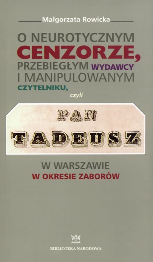 O neurotycznym cenzorze, przebiegłym wydawcy i manipulowanym czytelniku czyli Pan Tadeusz w Warszawie w okresie zaborów Małgorzata Rowicka Książka
