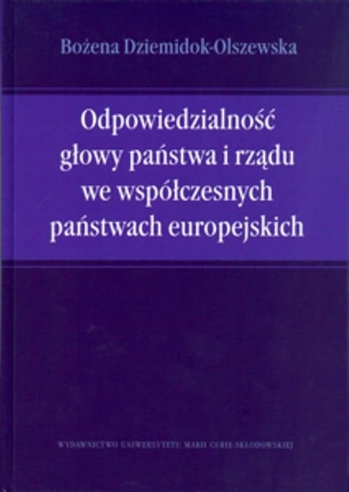 Odpowiedzialność głowy państwa i rządu we współczesnych państwach europejskich Bożena Dziemidok-Olszewska Książka