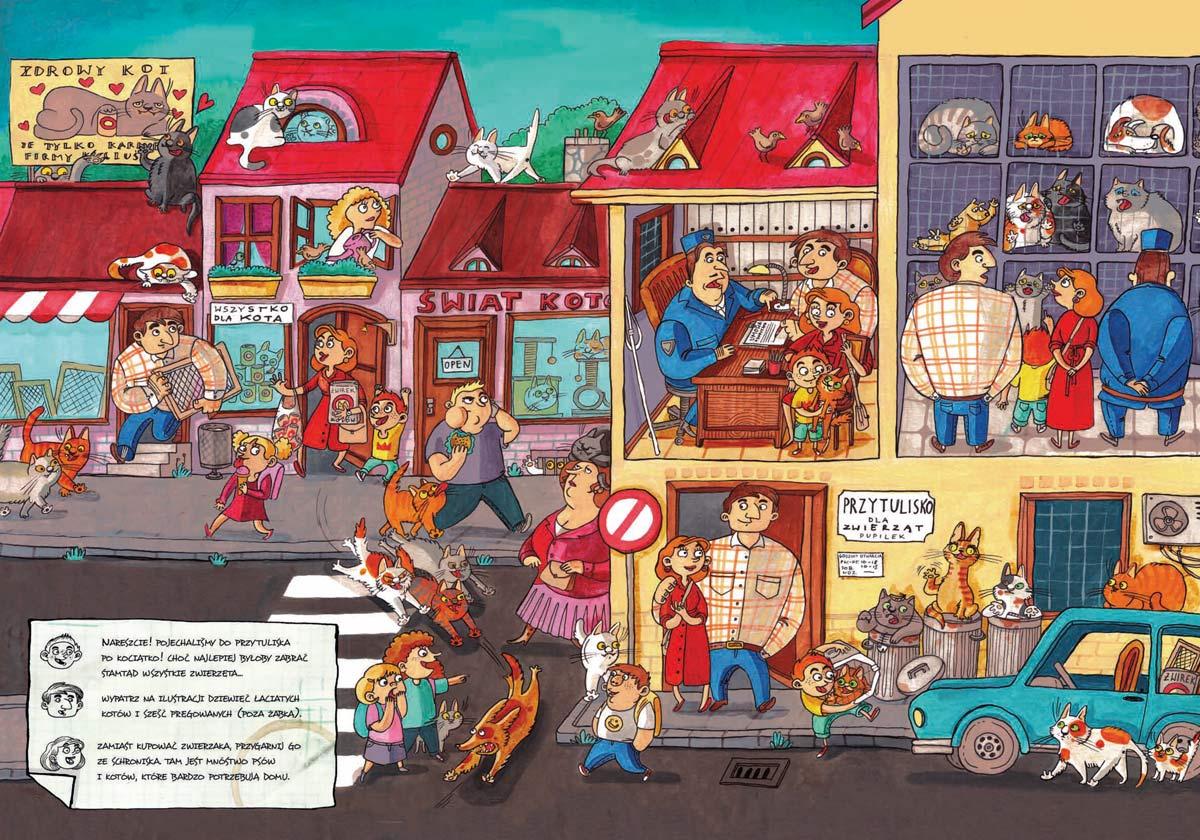 Życie grubego Gbura jest poukładane i spokojne – toczy się (dosłownie!) od miski do kanapy i z powrotem. Jego ludzie stwierdzają jednak, że Gburowi potrzebny jest ktoś, kto go rozrusza… i tak rodzina powiększa się o przygarniętą ze schroniska rudą kotkę Żabkę. „Opowiem ci, mamo, co robią koty” to przezabawna historia obrazkowa, a jednocześnie pierwsza kocia encyklopedia dla małego czytelnika, który nie będzie mógł się oderwać od przygód Żabki, Gbura, a także ich licznych przyjaciół. W tej książce czeka was jednak nie tylko czytanie i oglądanie rysunków, lecz także rozwiązywanie zadań i ćwiczenie spostrzegawczości poprzez wyszukiwanie poukrywanych przez autorkę szczegółów. Już wkrótce wy także się przekonacie, że co dwa koty, to nie jeden. Tylko czy Gbur uważa tak samo? „Co robią koty? To dobre pytanie. Wcale nie jestem pewna, czy każdy Polak umie na nie odpowiedzieć. Dlatego moim zdaniem powinien poznawać te niezwykłe zwierzęta, gdy jest jeszcze małym Polakiem. W codziennym życiu, ale i z mądrych, zabawnych, rozwijających wrażliwość książek. Potem nie tylko będzie umiał odpowiedzieć na pytania swoich dzieci, ale przede wszystkim nie przejdzie już obojętnie obok żadnego kota. Miłej lektury!” Dorota Sumińska Nikola Kucharska jest ilustratorką i autorką książek, komiksów oraz gier planszowych dla dzieci i młodzieży. Ukończyła projektowanie graficzne na katowickiej ASP. Współpracuje z wieloma wydawcami – między innymi w Polsce, Chinach, Rosji, Korei, Niemczech czy Hiszpanii. Jej „Podróż dookoła świata. Północ–południe. Wschód–zachód” nominowano w konkursie PTWK Najpiękniejsza Książka Roku 2016, a „Zwierzęta, które zniknęły. Atlas stworzeń wymarłych” (teksty: Katarzyna Gładysz, Joanna Wajs i Paweł Łaczek) otrzymały nagrodę główną w konkursie Mądra Książka Roku 2018, wyróżnienie w XVII edycji konkursu Świat Przyjazny Dziecku oraz nominację w konkursie Przecinek i Kropka 2018. Joanna Wajs w dzieciństwie chciała zostać stroicielką fortepianów. Nic z tego niestety nie wyszło, dlatego dziś jest tłumaczką literatury włosko- i anglojęzycznej, redaktorką, poetką, a także współautorką kilku książek dla dzieci – między innymi „Dzikich przewodników. Zwierząt w mitach, baśniach i legendach” oraz „Zwierząt, które zniknęły. Atlasu stworzeń wymarłych”. Jeśli akurat nic nie pisze ani nie czyta, to pewnie naprawia muszle nadepniętym ślimakom albo ratuje inne żyjątka – czasem również te, które wcale nie chcą być ratowane. Mieszka u swoich kotów (Buraka i Krewetki), ślimaka emeryta (Jana Marii) i wrony inwalidki (Nostromo). Powyższy opis pochodzi od wydawcy.