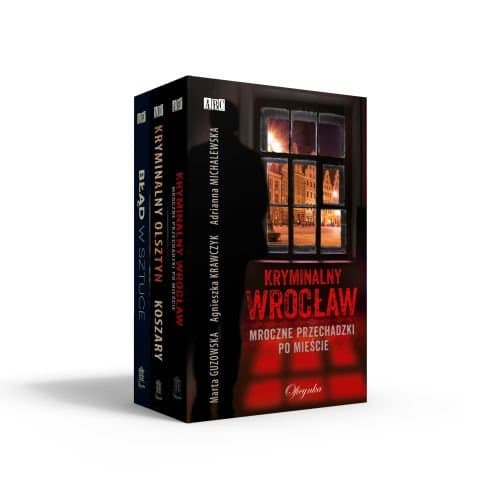 Kryminalne miasta – Wrocław, Olsztyn, Piła Każde miasto skrywa mroczne tajemnice. Ich ślady odnajdziemy w ciemnych zaułkach, opuszczonych miejscach, za drzwiami mieszkań szanowanych obywateli. Rozwikłaniem ponurych zagadek kryminalnych miast zajmują się prywatni detektywi, dziennikarze i policjanci. Zbrodni doskonałej nie ma. Czy na pewno? Kryminalny Wrocław. Mroczne przechadzki po mieście Nie od dziś wiadomo, że Wrocław stanowi znakomitą scenerię dla sensacyjnych fabuł. Ale takiego literackiego spaceru po Ostrowie Tumskim i jego okolicach jeszcze nie mieliście okazji zaznać. Waszymi przewodniczkami po dawnych cmentarzyskach, tajemniczych mostach, starych bibliotekach, zapomnianych podziemiach będą Zbrodnicze Siostrzyczki – trzy poczytne twórczynie kryminałów. W czasie tej przechadzki spotkacie nie tylko zbrodniarzy i ich ofiary – zetkniecie się również z istotami, w których istnienie nie wszyscy wierzą… Zbrodnicze Siostrzyczki narodziły się na początku 2012 roku, chociaż każda z Siostrzyczek miała już wtedy za sobą kawał życia. Marta Guzowska („Ofiara Polikseny”, „Głowa Niobe), Agnieszka Krawczyk („Morderstwo niedoskonałe”, „Dziewczyna z aniołem”) i Adrianna Michalewska („Zaułki zbrodni”) stworzyły grupę pisarską, żeby promować powieści kryminalne i sensacyjne, przede wszystkim polskie. Zbrodnicze Siostrzyczki mają na wspólnym koncie dwa tomy opowiadań kryminalnych, pięcioro dzieci, trzech mężów i zmienną liczbę kotów. Kryminalny Olsztyn. Koszary Tajemnicze zaułki Olsztyna, kryminalne zagadki i dobra zabawa Nikt nie zna lepiej Olsztyna niż twórcy niniejszej antologii. Oprowadzają nas po nim krętymi uliczkami, podsuwając zagadki trudne do rozwiązania nawet dla mistrzów kryminału. Oto możemy wraz z Mikołajem Kopernikiem pochylić się nad serią zabójstw, spojrzeć na malarstwo oczyma pewnego mordercy, zajrzeć do wnętrz kamienic starych rodów albo razem z pewnymi dziarskimi dziewczynami odkryć długo skrywane tajemnice koszar. W kryminalnym Olsztynie witają: Magdalena Maria Bukowiecka, Marek Adamkowicz, Wojciech Kulawski, Beata Sarnowska, Urszula Skorodziłło, Karolina Wiaczewska, Magdalena Knedler, Wiktoria Korzeniewska, Zuzanna Nikołajuk oraz Piotr Mielczarek. Kryminalna Piła. Błąd w sztuce „To nie błąd w sztuce, to kilkanaście wyjątkowych opowiadań! Po pierwsze, właśnie one zwyciężyły w konkursie Kryminalna Piła 2012, po drugie, akcja ich wszystkich dzieje się właśnie w Pile najbardziej policyjnym i najbardziej kryminalnym z polskich miast”. Marcin Wroński Pod przewodnictwem Ryszarda Ćwirleja ulicami i zaułkami kryminalnej Piły w ślad za nieuchwytnymi przestępcami kroczą Izabela Szymczak, Robert Małecki, Andrzej Klawitter, Karolina Wilczyńska, Joanna Pawłusiów, Beata Sołowiej, Marta Matyszczak, Michał J. Zieliński, Jarosław Oryszak, Katarzyna Wójcik, Joanna Gręda, Dorota Dziedzic-Chojnacka, Paweł Kukliński oraz Marek Dryjer. „Książka ta z pewnością wzbogaca literacko-kryminalną mapę Polski. Pisarską ręką łączy Piłę i jej gościnny klimat ze śledczym dążeniem do rozwiązywania najmroczniejszych nawet intryg, w których istotną rolę odgrywa intuicja i wiedza policjantów służby kryminalnej, oparta na dążeniu do prawdy i sprawiedliwości”. Leszek Koźmiński