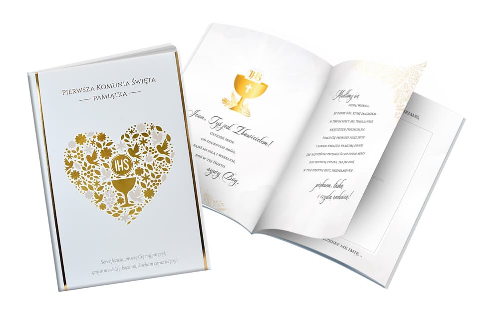 Książeczki PMB są wyjątkową pamiątką Chrztu lub Komunii Świętej. Wymiary książeczki: 15,1 x 20,8 cm.