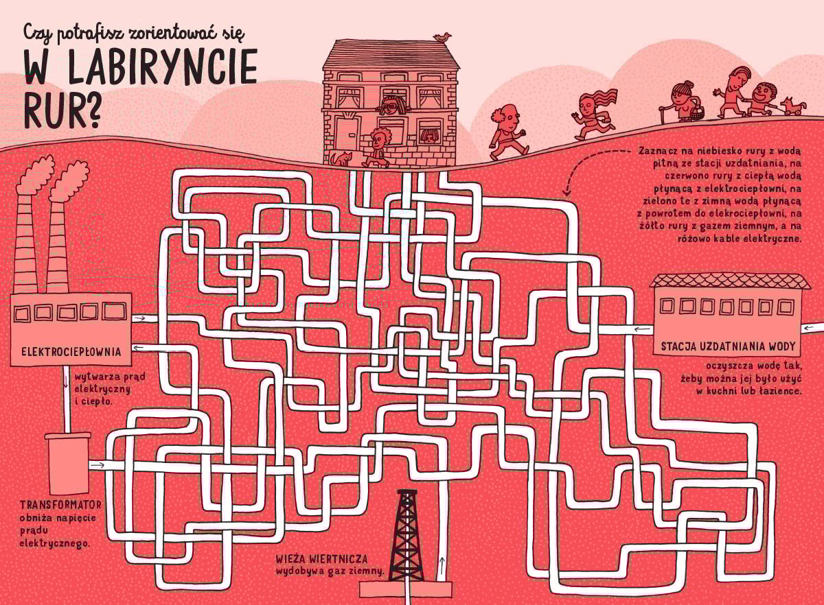 Wyrusz na rysunkową wyprawę w głąb Ziemi! Zaprojektuj kopalnię, zamień jaskinię w zębatego potwora i poprowadź tunel przez środek wielkiej góry. Skompletuj szkielet dinozaura, odwiedź podziemne miasto i upchaj pasażerów w tokijskim metrze. Rysuj i czytaj ciekawostki. Baw się i poznawaj świat! Blok zawiera 36 plansz. Każdą z nich można łatwo wyrwać, by obdzielić zadaniami całą rodzinę. Na odwrocie plansz narysowane są podziemne zwierzęta do kolorowania.
