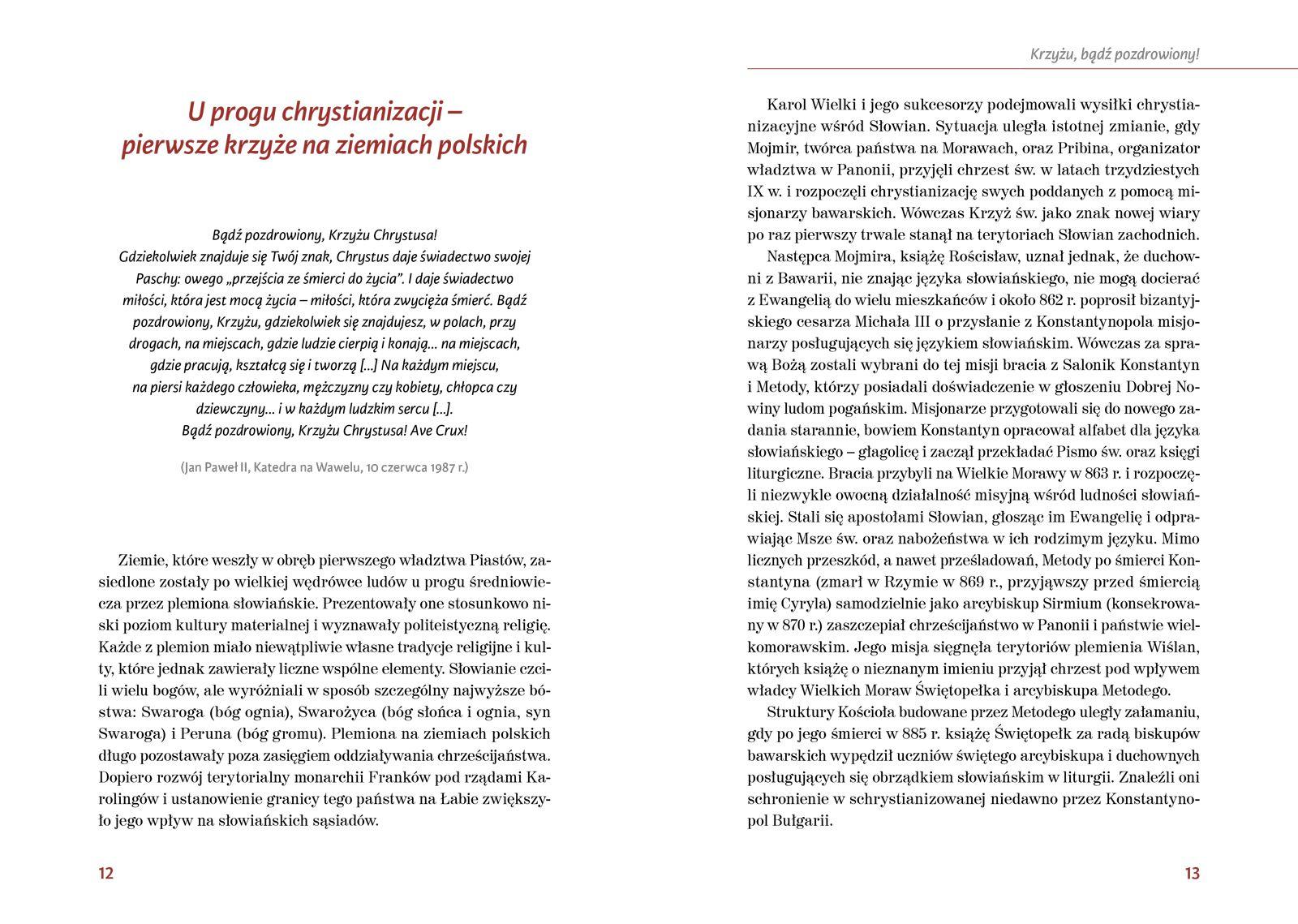 Piękno, niezachwiana moc i potęga Krzyża. Związanie losów Rzeczypospolitej, od narodzin po dzień dzisiejszy, z Krzyżem oraz nieprzemijająca nadzieja pokładana w Chrystusie – to temat tej książki. Wybitni autorzy i uczeni, wielcy patrioci, utrwalają słowem, a mistrz Adam Bujak obrazem wizerunek Polski wiernej Bogu od jedenastu wieków. Bez chrześcijaństwa nie byłoby ani naszego państwa, ani naszego narodu. Krzyż od wieków funkcjonuje zarówno w duszy człowieka, jak i w przestrzeni publicznej – wywierając zbawienny wpływ w obu przypadkach. Połączenie słowa z obrazem, specjalność edytorska Białego Kruka, osiąga tu mistrzostwo. Teksty zapoznają nas nie tylko z ważnymi wydarzeniami historycznymi, ale także pomagają zrozumieć bogactwo ukrytych nieraz lub zapomnianych znaczeń ikonograficznych. Zdumiewa wielość i różnorodność form przedstawień Krzyża i Ukrzyżowanego. Mamy tu krzyże pasyjne, liturgiczne, ołtarzowe, brackie, pokutne, papieskie, herbowe, jako symbole władców itd. Krzyże w świątyniach, w polach, w rękach wiernych i utwierdzone na szczytach katedr lub pomników (jak np. uwidoczniony na okładce Zygmunt III stojący na kolumnie przed Zamkiem Królewskim w Warszawie). Krzyż Chrystusowy od początku stał się znakiem, któremu się sprzeciwiają. Tak bywało dawniej, tak jest i teraz, co w tej książce też zostało ukazane. Celem tej publikacji jest z jednej strony poszerzenie wiedzy historycznej i delektowanie się pięknem prezentowanych wybitnych dzieł sztuki, a z drugiej strony – obrona Krzyża. Zgodnie z tym, do czego wzywał nas wielki papież św. Jan Paweł II: „Brońcie Krzyża od Giewontu po Bałtyk! Brońcie Krzyża, nie pozwólcie, aby imię Boże było obrażane w waszych sercach, w życiu społecznym, rodzinnym”. Spis treści Wstęp Część I: Nauczanie i autorytet Kościoła 1. Papież może zmienić doktrynę? 2. Dogmat o nieomylności papieża oznacza, iż prawdą jest cokolwiek, co on powie? 3. Sobór watykański II naucza, iż Kościół powinien być demokratyczny. Dlatego istnieją rady parafialne? 4. Sobór watykański II był tak przełomowy, że obecnie nie ma sensu czytanie ksiąg teologicznych napisanych przed nim? 5. Poprzez ekskomunikę Kościół katolicki wysyła ludzi do piekła? 6. Katolicy, którzy odłączą się od Kościoła (porzucą swoją wiarę), pójdą do piekła? 7. Kościół naucza, że jeśli katolik będzie uczęszczał na Mszę św. i wyznawał każdy grzech ciężki, to na pewno pójdzie do nieba? 8. Nie powinniśmy wydawać pieniędzy na piękne kościoły? Część II: Bezbłędność i autentyczność Pisma Świętego 9. Dawniej świeckim wiernym nie było wolno czytać Pisma Świętego? 10. To z powodu ekumenizmu katolicy mogą teraz czytać wszystkie istniejące przekłady Biblii? 11. Jedynie księża i wykwalifikowani teologowie mogą prowadzić zajęcia poświęcone Pismu Świętemu? 12. Ewangelia zawiera wiele niekonsekwencji? 13. Stary Testament zawiera wiele sprzeczności i ludzie o tym wiedzieli przynajmniej od ostatniego stulecia? 14. Katolicy nie wierzą w nieomylność Biblii, natomiast wierzą w to protestanci, szczególnie fundamentaliści? 15. Współczesne badania naukowe wykazały, że księgi Nowego Testamentu zostały spisane na długo po opisywanych w nich wydarzeniach? Opisy cudów są prawdopodobnie przesadzone i bardziej legendarne niż prawdziwe? Część III: Msza św. i sakramenty 16. Każdy, kto sobie tego życzy, może przyjąć Komunię św. podczas Eucharystii? 17. Sobór watykański II podkreślał prymat ducha nad literą prawa, więc nie obowiązuje nas już udział w Mszy św.? 18. Jezus umarł i Jego ofiara bezustannie się powtarza podczas każdej Mszy św.? 19. Luteranie i anglikanie wierzą w Jego Prawdziwą Obecność w ten sam sposób co katolicy, tylko tłumaczą to inaczej? 20. Jeśli się rozwiedziesz, zostaniesz automatycznie ekskomunikowany i nie będzie ci wolno przystępować do Komunii? 21. Dawna praktyka przyjmowania Komunii św. pod dwiema postaciami (chleba i wina) oznacza, iż nadal powinniśmy przyjmować Najświętszy Sakrament pod dwiema postaciami, inaczej bowiem nie przyjmujemy Ciała i Krwi Chrystusa? 22. Jeśli mężczyzna i kobieta zawrą sakrament małżeństwa w Kościele katolickim, ale nigdy nie będą mieli dzieci, ich małżeństwo jest nieważne? 23. Wszyscy sądzą, że unieważnienie małżeństwa tak naprawdę jest katolickim ekwiwalentem cywilnego rozwodu. Różnica dotyczy jedynie nazwy? 24. Sumienie mówi nam, co jest prawdą, a co fałszem, co jest dobre, a co złe? 25. Nie musimy chodzić do spowiedzi, bo grzechy zostają odpuszczone w momencie, kiedy bezpośrednio zwracamy się do Boga? 26. Każdy katolik powinien pójść do spowiedzi przynajmniej raz w roku? Część IV: Niepokalane Poczęcie, objawienia i różaniec 27. Niepokalane Poczęcie oznaczało, że Maryja nie potrzebowała Zbawiciela? 28. Katolicy muszą wierzyć, że Najświętsza Maria Panna naprawdę objawiła się w Fatimie, Lourdes i innych miejscach objawień zaaprobowanych przez Kościół? 29. Powinniśmy pozbyć się różańca, ponieważ jest przeszkodą dla ekumenizmu? Część V: Nasze wieczne przeznaczenie 30. Każdy jest z natury dobry i prawie każdy pójdzie do nieba? 31. Czyściec nie jest kluczową doktryną, a jedynie opcjonalną? 32. Wszyscy z wyjątkiem kanonizowanych przez Kościół świętych i męczenników będą musieli spędzić jakiś czas w czyśćcu, zanim pójdą do nieba? 33. Kościół zrezygnował ze swojego „starego” nauczania odnośnie do odpustów, według którego można uniknąć pobytu w czyśćcu, jeśli się praktykuje pewne uczynki i modlitwy? 34. W piekle nie przebywa się „raz na zawsze”? Ostatecznie wszyscy będą zjednoczeni z Bogiem? 35. Kapłani i diakoni nie powinni nawet wspominać o piekle, bo to nieżyczliwe z ich strony? 36. Kościół katolicki uczy, że możemy osiągn