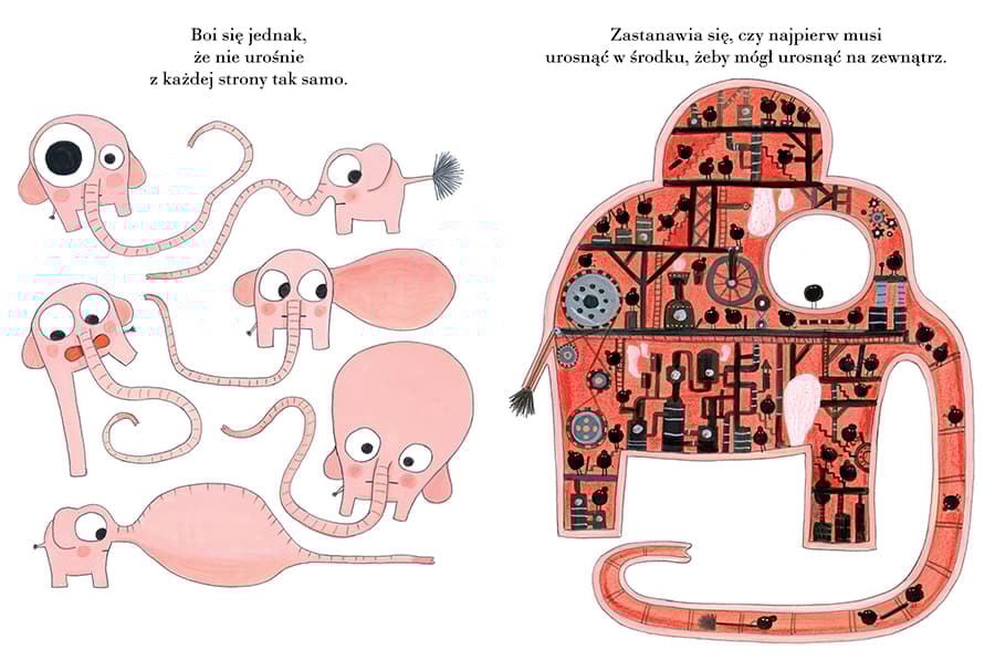Pewnego dnia Pomelo zauważa, że dmuchawiec, pod którym mieszka, zrobił się dziwnie mały. Czy to znaczy, że Pomelo urósł? Hurra! Tylko co to właściwie znaczy rosnąć? Czy trzeba najpierw urosnąć w środku, żeby móc urosnąć na zewnątrz? Czy z każdej strony rośnie się tak samo? Czy jak się urośnie, to można robić wszystko? I czy wszystko się wtedy rozumie? Ale czy czegoś też się nie traci? Te i wiele innych pytań zadaje sobie filozofujący słoń Pomelo w książce, która też bardzo urosła! Zabawny i mądry komentarz do życia (nie tylko słoni!) – dla dzieci i dorosłych. Świetne ilustracje Benjamina Chauda, którego znamy między innymi z książek o Bincie, Lalo i Babo. Inne książki o słoniu Pomelo: „Pomelo ma się dobrze pod swoim dmuchawcem”, „Pomelo jest zakochany”, „Pomelo śni”, „Pomelo się zastanawia", „Pomelo wyrusza za mur ogrodu", „Pomelo podróżuje" oraz „Pomelo i przeciwieństwa”, „Pomelo i kolory" i „Pomelo i kształty".Szczegółowe informacje na temat książki Pomelo rośnie