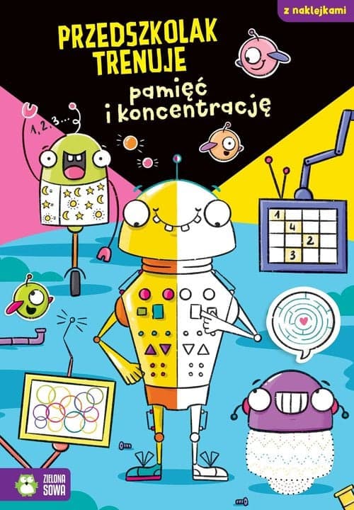 Sprawdź swoją koncentrację. Rysuj, odkrywaj, licz i koduj – ćwicz pamięć z serią Przedszkolak trenuje. W środku znajdziesz ciekawe zadania rozwijające wyobraźnię, ale też elementy do pokolorowania. "Przedszkolak trenuje" to ciekawa seria dla dzieci chcących wesoło spędzić czas z uroczymi zwierzętami i robotami, a przy tym ćwiczyć motorykę ręki, pamięć, koncentrację i spostrzegawczość. Zeszyty wzbogacone o kolorowe naklejki.