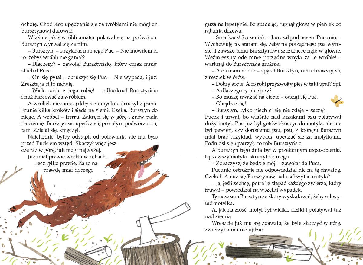 Bohaterami tej pełnej ciepłego humoru książki są dwa psy, Puc i Bursztyn, które na podwórzu pędzą życie pełne psot i figlów. Pewnego dnia ich beztroską zabawę przerywa wizyta niezwykłych gości – dwóch rasowych, rozpieszczonych piesków z Warszawy. Dzięki wiejskim psom Tiuzdej i Mikado poznają uroki prawdziwego życia i przeżywają liczne przygody.