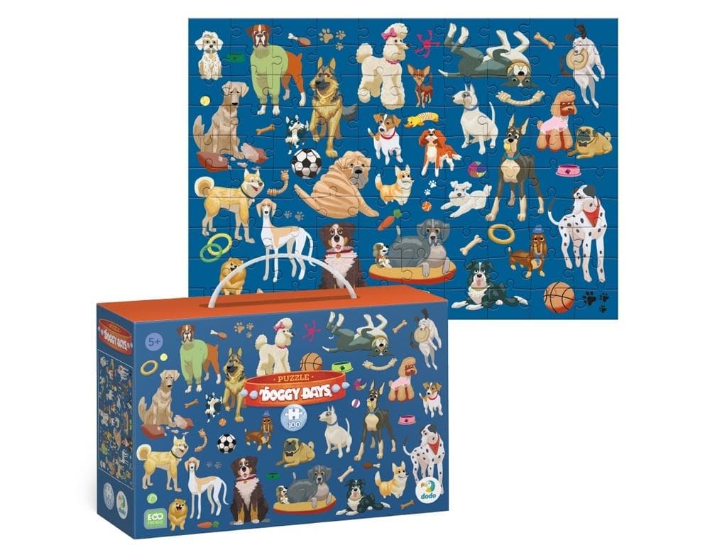 Puzzle z motywem "Doggy Days" zapewni Ci fascynujący proces układania i wiele pozytywnych emocji. Na obrazku widać uroczych czworonożnych przyjaciół, co sprawia, że gra staje się jeszcze ciekawsza. Zestaw zawiera 100 wysokiej jakości części, które można łatwo ze sobą połączyć. Zabawa puzzlami rozwija u dziecka uwagę, logikę i sprawność motoryczną.
