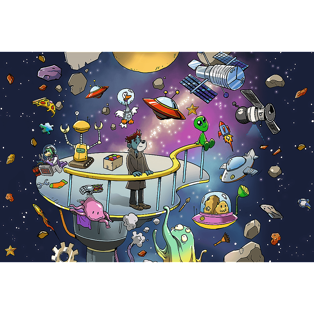 Przenieś się w pełen humoru i kolorów kosmos z wyjątkowymi puzzlami i Rodziną Treflików w Kosmosie.