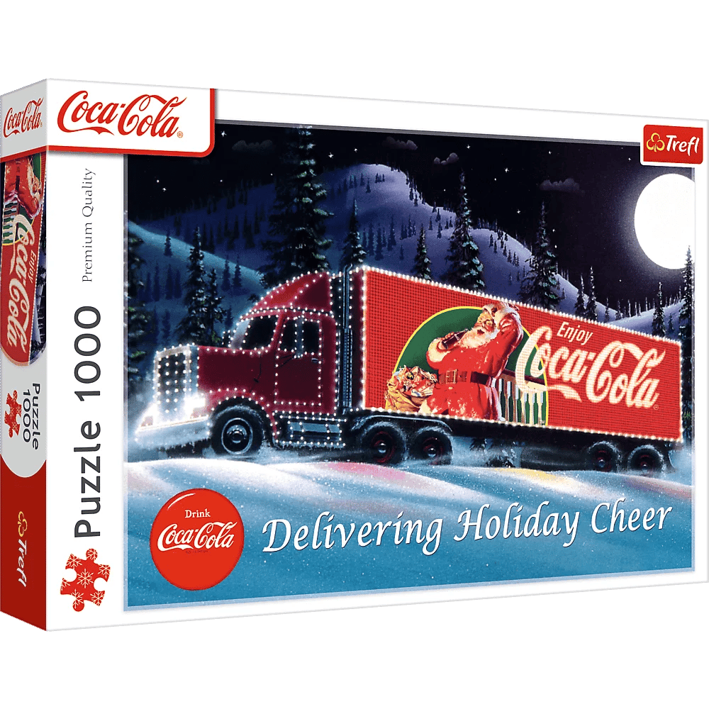 Świąteczne puzzle Coca-Cola: Świąteczna Ciężarówka, składające się z 1000 elementów, przedstawiają słynną, kojarzącą się ze Świętami Bożego Narodzenia, ciężarówkę Coca Coli. Po ich ułożeniu powstanie obrazek w rozmiarach 683x480 mm.