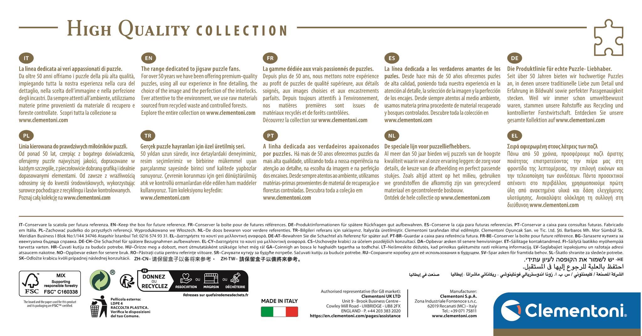 Gruba tektura puzzlowa i specjalna technologia druku zapewniają produkt wysokiej klasy.