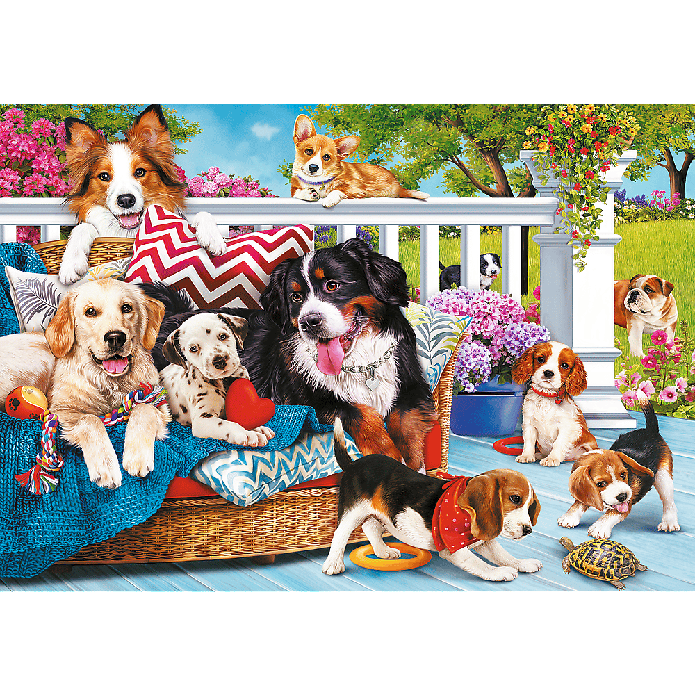 Puzzle przedstawiają Doggy Friendship. Po ułożeniu powstanie obraz o wymiarach 683x480 mm.