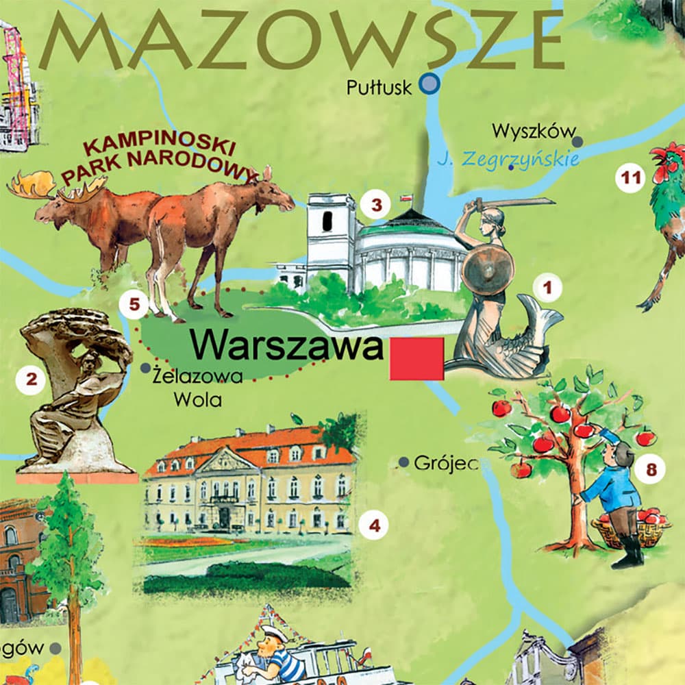 Dzięki temu mapa jest fascynującym źródłem wiedzy o historii i teraźniejszości. Przekazuje w ciekawy sposób informacje z zakresu geografii, przyrody i kultury.