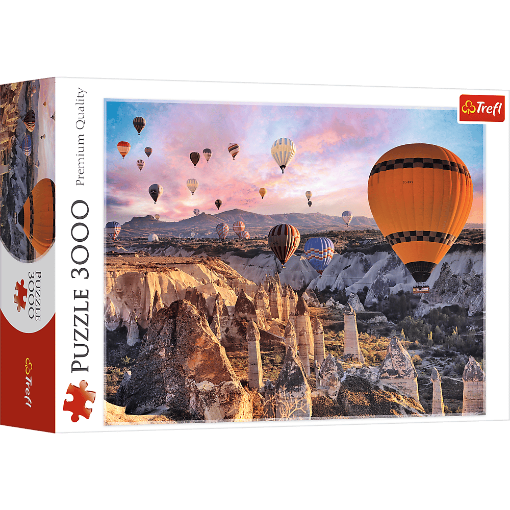 Puzzle 3000 elementów przedstawiające balony lecące nad Kapadocją.