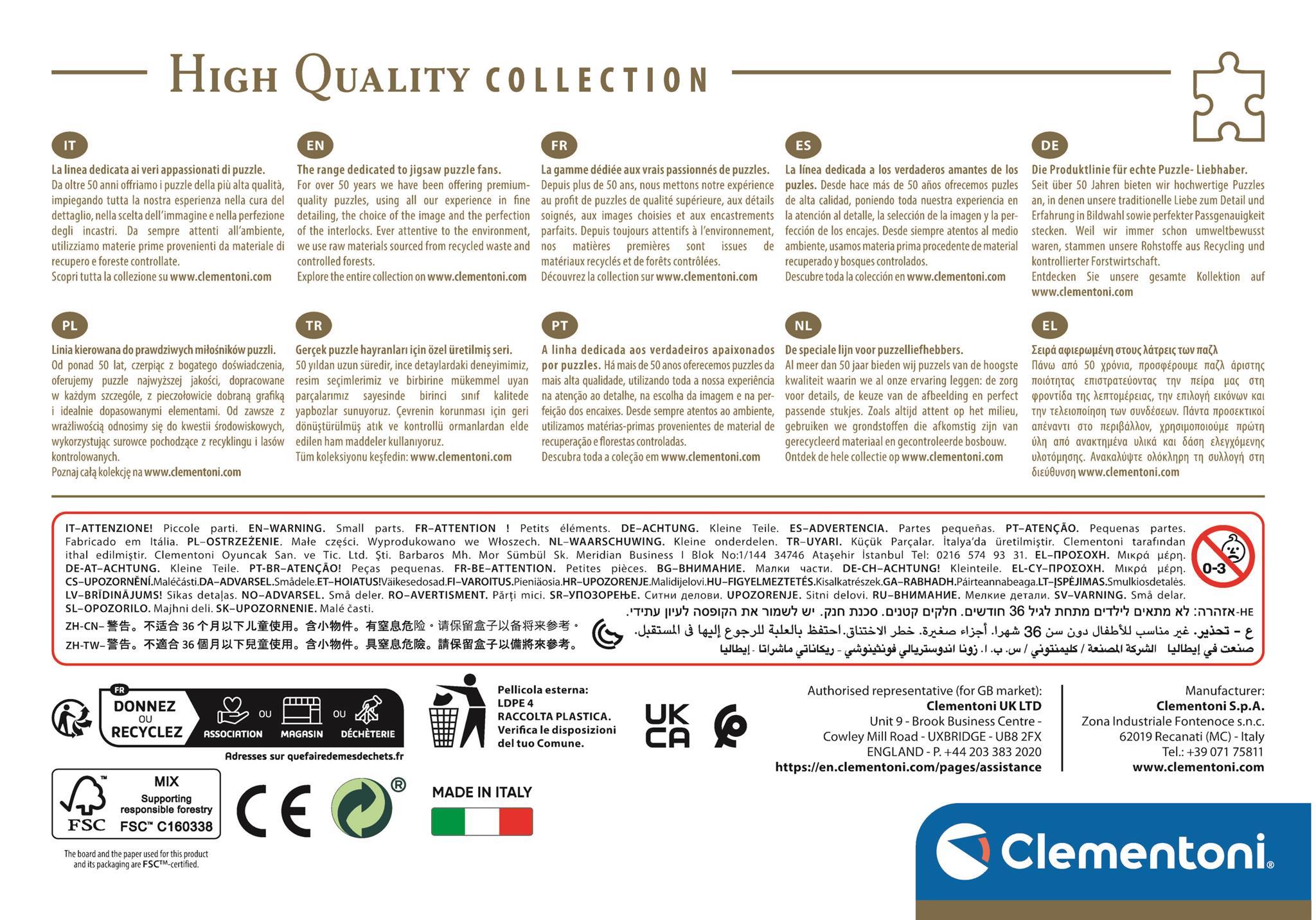 Gruba tektura puzzlowa i specjalna technologia druku zapewniają produkt wysokiej klasy.