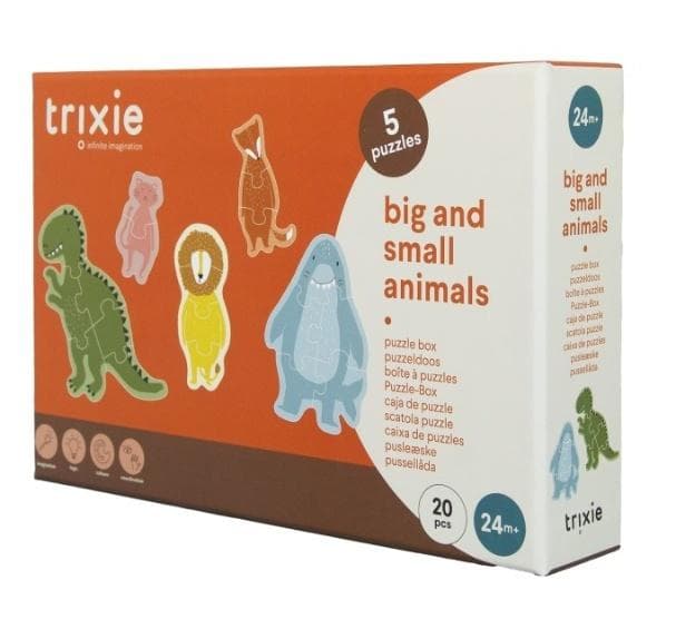Szczegółowe informacje na temat gry Puzzle Duże i małe zwierzęta 5 układanek