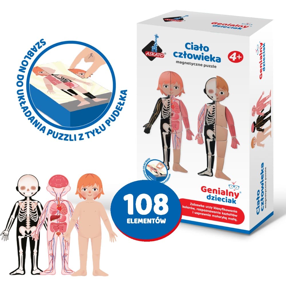 Puzzle magnetyczne Moje Ciało 108 elem. To puzzle które zapoznają dziecko z budową człowieka.