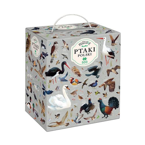 Ogromna układanka składa się z 500 elementów i przedstawia ptaszki, ptaki i ptaszyska, które można spotkać w Polsce. To świetny pomysł na prezent nie tylko dla ornitologów, ale wszystkich wielbicieli przyrody. To doskonały sposób na relaksujące spędzanie czasu. Wymiar układanki: 48 x 68 cm. Elementy są wykonane z trwałej tektury. Doskonałe jako puzzle dla dorosłych i starszaków.