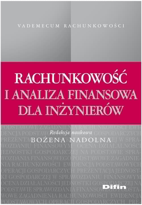 Rachunkowość dostarcza informacji do oceny sytuacji majątkowej i finansowej jednostki gospodarczej. Użytkownikami informacji z rachunkowości może być szeroki krąg odbiorców, w tym również zarządzająca kadra inżynierska. Warunkiem efektywnego wykorzystania przez nich tych informacji jest poznanie specyficznej terminologii, zasad i procedur rachunkowości oraz metod analizy finansowej już na etapie kształcenia. Podręcznik ma na celu przedstawienie podstawowych zagadnień z rachunkowości, sprawozdawczości i analizy finansowej przydatnej inżynierom do zrozumienia powiązań między zdarzeniami gospodarczymi będących skutkiem ich działań, a uzyskanymi efektami finansowymi. Ze względu na przedstawienie w nim całego procesu informacyjnego rachunkowości treść podręcznika może być przydatnym źródłem wiedzy dla przyszłych i już pracujących projektantów i programistów systemów finansowo-księgowych, jak również inżynierów innych branż.