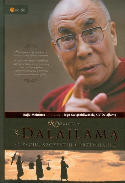 Rajiv Mehrotra rozmawia z jego Świątobliwością XIV Dalajlamą. Prawdziwy wróg znajduje się wewnątrz nas, nie na zewnątrz. Dzięki treningowi i wysiłkowi jesteśmy w stanie przejąć kontrolę nad naszym umysłem i zdyscyplinować go, a wówczas osiągniemy prawdziwy spokój. Wszyscy pragniemy szczęścia - szczęścia, które ma swoje źródło w naszym wnętrzu - jego koszty są zatem niewielkie, nieprawdaż? Mówię tu o szczęściu, którego nikt nie może zburzyć, ukraść ani odebrać nam w inny sposób. To właśnie tego rodzaju wewnętrzny spokój jest najcenniejszy - jego fundamentami są miłość i współczucie. Jeśli ktoś się ze mną zgadza, powinien zacząć wcielać moje słowa w życie. Prawdziwi mistrzowie to ci, którzy mają odwagę żyć zwykłym ludzkim życiem, posiadają świadomość własnych słabości, ale nieustannie z nimi walczą. Poszukują wiedzy i dzielą się nią z innymi. Wykazując się jednocześnie pokorą i pewnością siebie, Dalajlama postępuje zgodnie z tymi zasadami. Słucha wszystkich ludzi z wielką uwagą i ze wszystkimi rozmawia. Zawsze okazuje głęboki szacunek - bez względu na to, czy jego rozmówcami są przybysze z Tybetu, ryzykujący często życie, by dotrzeć do swojego guru, czy przypadkowi ludzie spotkani w hotelowym holu, na ulicy bądź w samolocie, politycy, dziennikarze, naukowcy, filozofowie, ateiści, ludzie głębokiej wiary, żebracy czy rekiny biznesu. Dla Dalajlamy wszyscy oni są ludźmi, którzy pragną szczęścia i starają się unikać cierpienia. Teraz również Ty masz możliwość doświadczenia siły i mądrości, płynących z rozmów z jego Świątobliwością. Niniejsza książka stanowi zapis rozmów z Dalajlamą - zawiera jego przemyślenia i spostrzeżenia, wyrażane i dokumentowane w ciągu ponad dwudziestu pięciu lat. Przekonują nas one, że możemy podążać jego śladami i powtarzać jego sukcesy. Dalajlama konsekwentnie przypomina, że nie można przyjmować żadnej nauki czy filozofii w sposób bezkrytyczny, dogmatyczny i czołobitny. Chociaż pewne tezy mogą wydawać się przydatne z duchowego punktu widzenia, należy zawsze poddać je weryfikacji logicznej. Buddyjski przywódca oczekuje, że jego samego, a także wszystko inne, rozpatrywać będziemy w takiej właśnie perspektywie. Prosił, by w ten sposób podchodzić i do tej książki.