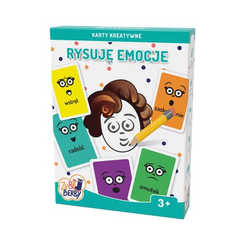 PROSTY SPOSÓB NA OSWOJENIE NAJMŁODSZYCH Z EMOCJAMI Zestaw 16 kart z konturami twarzy do rysowania w nich różnych emocji. Flamaster suchościeralny pozwala na wielokrotną zabawę, a karty przedstawiające uczucia służą pomocą małym rysownikom. Karty kształtują wrażliwość na emocje innych osób, rozwijają empatię i inteligencję emocjonalną. Gra polecana przez psychologów rodzicom, wychowawcom i terapeutom do pracy z dziećmi już od 3. roku życia.