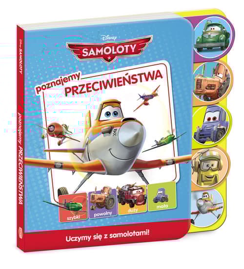 Poznajemy przeciwieństwa to książeczka twardostronicowa z registrami adresowana do najmłodszych dzieci. Bawiąc się z bohaterami filmu „Samoloty" - robiąc wesołe i smutne minki, podskakując wysoko i schylając się nisko - maluchy nauczą się dostrzegać przeciwieństwa. Rozwiązując ciekawe i pomysłowe zadania ćwiczyć będą także spostrzegawczość. W towarzystwie sympatycznych bohaterów filmu „Samoloty" zdobywanie nowych umiejętności to świetna zabawa!