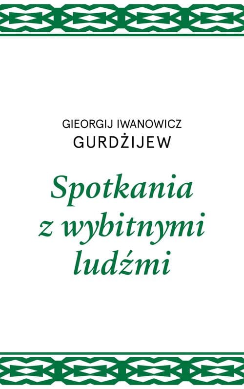 Spotkania z wybitnymi ludźmi stanowią drugi cykl pism G.I. Gurdżijewa. Po raz pierwszy ukazały się we Francji w roku 1960. Niniejsze trzecie wydanie w języku polskim zostało przygotowane na podstawie oryginalnego tekstu rosyjskiego, który stał się dostępny dopiero w roku 2015. Jak powiedział sam autor, jego zadaniem w tym cyklu było dostarczenie materiału potrzebnego do stworzenia odczucia nowego świata – odczucia rzucającego inne światło na życie człowieka. Spotkania z wybitnymi ludźmi to opowieść o latach dzieciństwa, młodości i pierwszym etapie poszukiwań Gurdżijewa. Nie jest to jednak autobiografia w ścisłym znaczeniu tego słowa. Opowiadając o swoim barwnym życiu i niewiarygodnych wprost przygodach, Gurdżijew daje nam przedsmak innej rzeczywistości i wskazuje na źródła posiadanego przez siebie poznania. Gieorgij Iwanowicz Gurdżijew – uważany za jednego z największych mistyków XX wieku, urodził się w Armenii około 1870 roku i zmarł w Paryżu w 1949. Już we wczesnej młodości jego pragnienie zrozumienia sensu ludzkiego życia stało się tak silne, że zaczął przyciągać do siebie grupę „wybitnych ludzi” – między innymi inżynierów, lekarzy, archeologów – takich samych jak on niestrudzonych Poszukiwaczy Prawdy. Wyruszył z nimi do wielu krajów Bliskiego Wschodu i Azji Środkowej w poszukiwaniu poznania, które, jak czuli, na pewno kiedyś istniało, ale którego prawie wszystkie ślady gdzieś zaginęły.