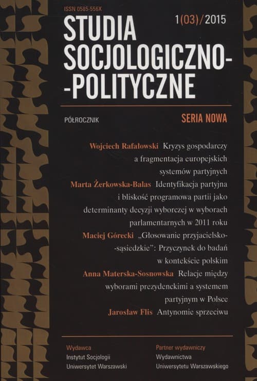 Szczegółowe informacje na temat książki Studia Socjologiczno-Polityczne 1(3)/2015