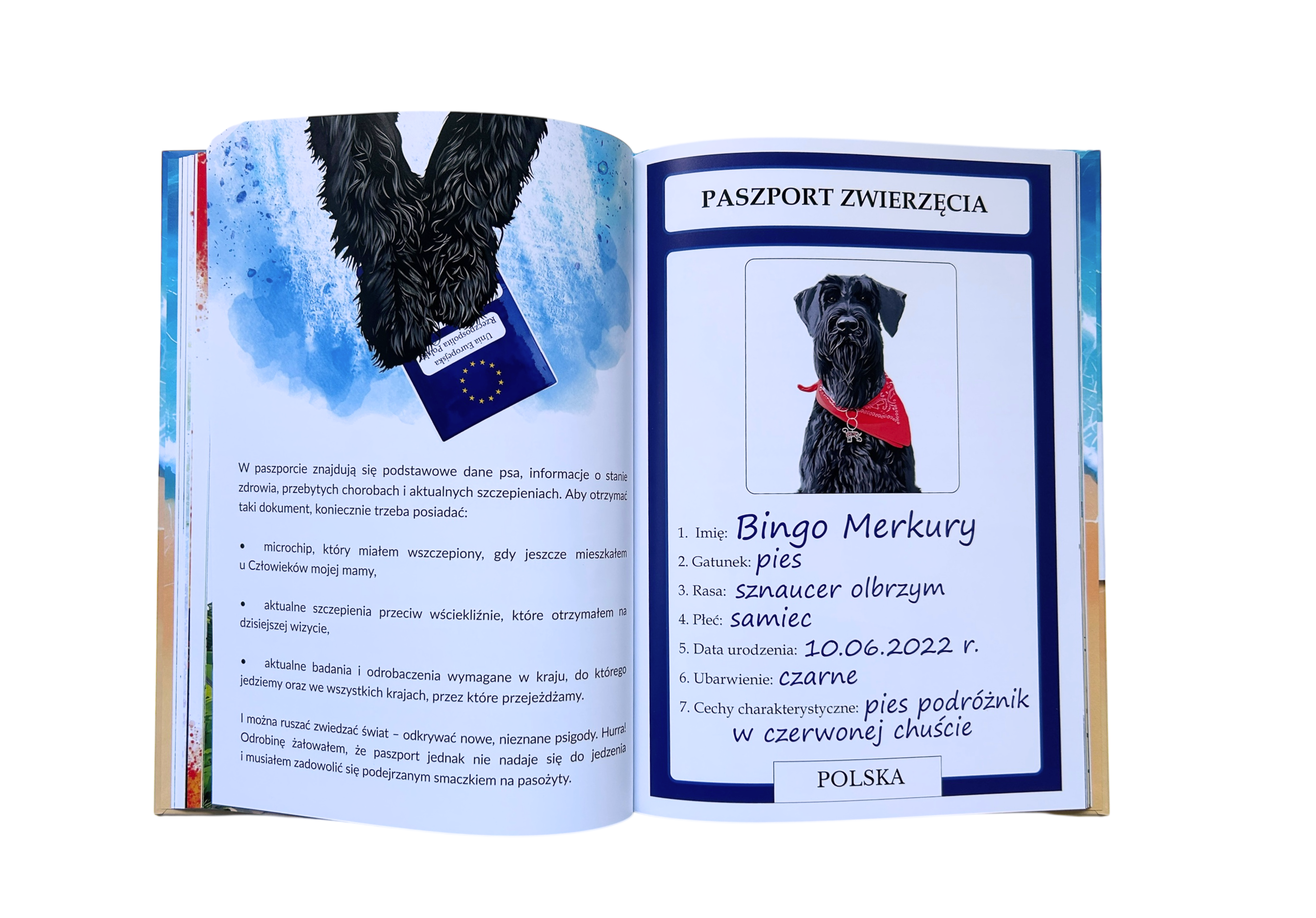 „Sznaucer Bingo na tropie psigód” to pierwsza w Polsce książka dla dzieci, której bohaterem i narratorem jest… sznaucer olbrzym. To nie wymyślona postać tylko prawdziwy pies. Ma czerwoną chustę, masę przemyśleń i jeszcze więcej psigód na koncie.