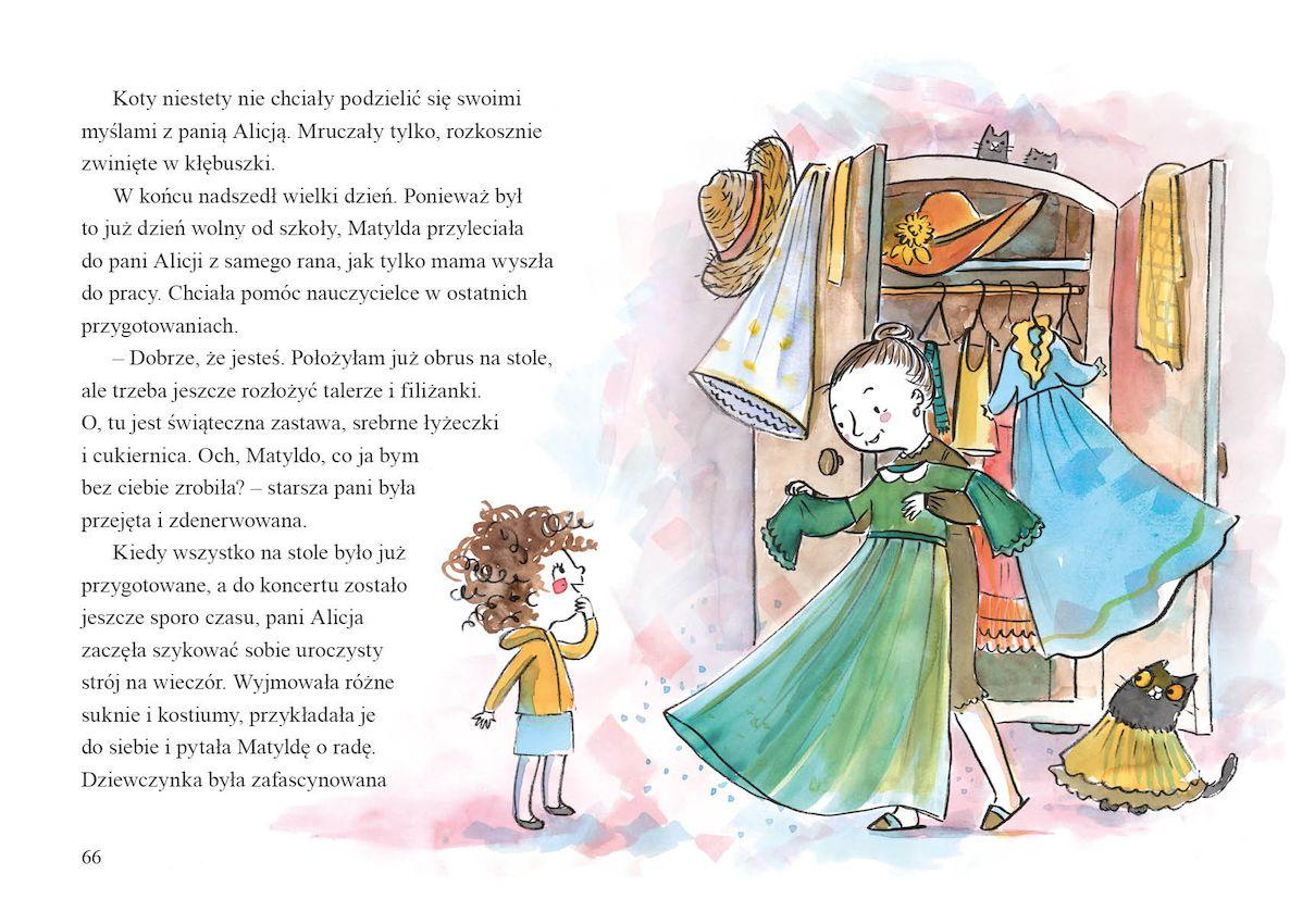 Matylda, roztrzepana i wiecznie potargana marzycielka, ma swój sekret. Codziennie po lekcjach uczy się gry na skrzypcach. Uwielbia to, podobnie jak uwielbia swoją nauczycielkę gry, panią Alicję, i jej kota Gawota. Dziewczynka byłaby w pełni szczęśliwa, gdyby nie to, że mama nic o jej graniu nie wie…