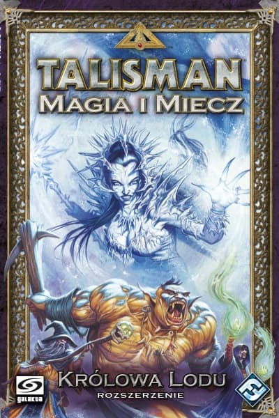 Oto dzieło Królowej Lodu, lodowiec przyciągnięty z mroźnych wód na północy. Królowa przywdziała Koronę Władzy i dzięki jej magii zamienia krainę w pozbawione życia, skute lodem pustkowie. Czy pokonasz szalejące zamiecie śnieżne i dziwaczne istoty, zamieszkujące ten srogi krajobraz? W rozszerzeniu Królowa Lodu gracze znajdą 4 nowych Poszukiwaczy, 84 nowe karty Przygód, 20 nowych kart Zaklęć, 24 karty zadań Czarownika i 3 karty Alternatywnych Zakończeń – w tym epicką bitwę z Królową Lodu! To nie jest samodzielna gra! Do rozgrywki wymagana jest podstawowa wersja gry: Talisman: Magia i Miecz. Liczba graczy: 2 - 6 osób Wiek: od 8 lat Czas gry: ok. 90 minut