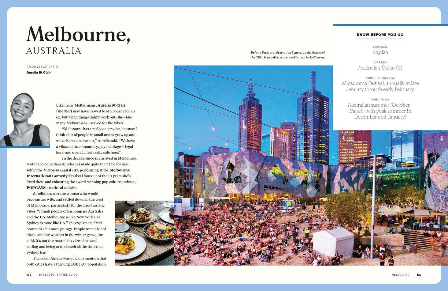 - Handy 'Know Before You Go' boxes for each destination share details on the local languages, currency, Pride celebrations, and information on when to go