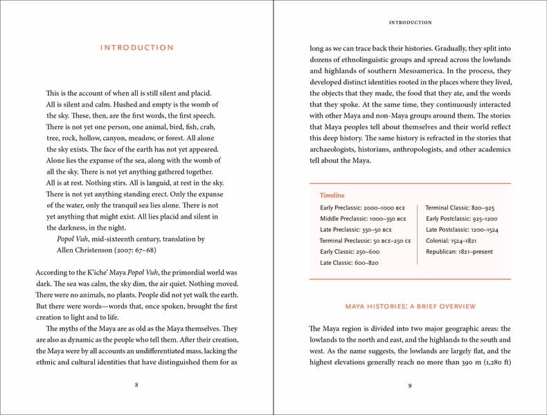 In The Maya Myths Mallory Matsumoto skilfully evokes the enduring vibrancy of Maya culture, from the peak of the Maya hieroglyphic tradition in the eighth century AD, through the invasions of the Spanish conquistadors up to the present day. The book draws from texts, images and Maya oral histories, reflecting a history of contact and change, rather than a sealed-off past. The Maya region has always been fragmented, leading to a unique cultural and linguistic diversity resulting in a varied and intriguing mixture of stories. Here are well-known texts like the Books of Chilam Balam and the Popol Vuh, Spanish texts, as well as lesser-known sources. This will highlight the richness and varied nature of Maya myths, offering readers a deeper understanding of the communities that produced these captivating stories.