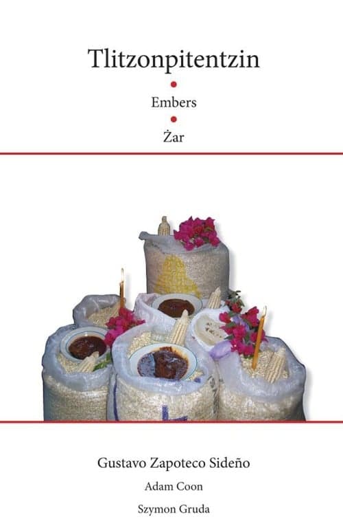 Tom wierszy wybitnego współczesnego poety nahua Gustava Zapoteca Sidena wraz z przekładem literackim w językach angielskim i polskim Adama Coona i Szymona Grudy. Każdy z wierszy jest „żarem czasu”, nośnikiem pradawnych słów, które nie całkiem jeszcze zamilkły, mającym moc ożywiania przeszłości i czynienia jej częścią teraźniejszości. Inin xochicuicaamoxtli tlen quiihcuiloh huei xochicuicatlahcuilohquetl Gustavo Zapoteco Sideno no quitlahtolcuepqueh ica ingleztlahtolli huan polacohtlahtolli Adam Coon huan Szymon Gruda. Cehce xochicuicatl ce “tlitzontlitzin itech cahuitl” tlen quimama huahcapatlahtolli tlen nocca caquizti, tlen quichamanaltia huan quiyancuilia tococolhuan huan tocicihhuan ininnemiliz. This book of poems by the distinguished contemporary Nahua author Gustavo Zapoteco Sideno includes literary translations in English and Polish by Adam Coon and Szymon Gruda. Each of the poems is “an ember of time,” a carrier of ancient words that have not been silenced, having the power to revive the past and make it part of the present.