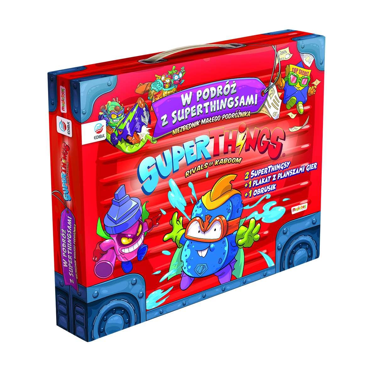 Zestaw wakacyjny SuperThings to niezbędnik małego podróżnika to wiele pomysłów na to, jak przyjemnie spędzić czas podczas wypraw i podróży. Zawiera 36-stronicową książkę z perforacją z licznymi materiałami do samodzielnej zabawy oraz w towarzystwie przyjaciół i rodziny: plakat z planszami gier, ciekawe łamigłówki i zadania. W zestawie znajduje się również kolorowy obrusik z rysunkami ulubionych postaci, który przyda się nie tylko w czasie pikników oraz aż dwie figurki SuperThings!