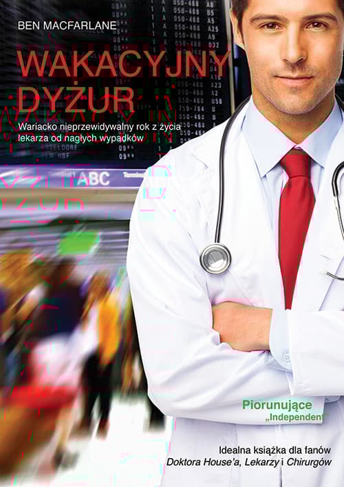Po kogo zadzwonicie, jeśli przydarzy wam się wypadek na wakacjach? Oto Dr Ben MacFarlane. Jego zadanie to przetransportować do ojczystego kraju ludzi unieruchomionych za granicą. Kim są jego pacjenci? Ofiary wakacyjnych wypadków, wstydliwych incydentów podczas służbowych delegacji oraz wszelkich zdarzeń na wyjeździe, kiedy coś poszło nie tak, jak powinno. Starsza pani, która pomyliła ecstasy z aspiryną. Nastolatek, który spadł z balkonu podglądając barmanki w ich sypialni. Modelka, u której nastąpiły komplikacje po operacji piersi w Brazylii. Lista jest długa... To JEGO historia. Szalony rok z życia latającego, brytyjskiego doktora. Dramatyczna, czasem groteskowo zabawna medycyna nagłych wypadków nie ogranicza się tylko do oddziałów szpitalnych. TO może zdarzyć się na siedzeniu tuż obok nas już podczas kolejnego wakacyjnego lotu. Otwiera nam oczy na drugą, nieznaną stronę urlopowego szaleństwa „Now Magazine” Dr Ben MacFarlane ukończył medycynę w Wielkiej Brytanii. Pracował w kilku szpitalach zagranicą, a następnie zaczął przeprowadzać repatriacje dla towarzystw ubezpieczeniowych. Obecnie jest związany na stałe ze szpitalem klinicznym w Londynie.