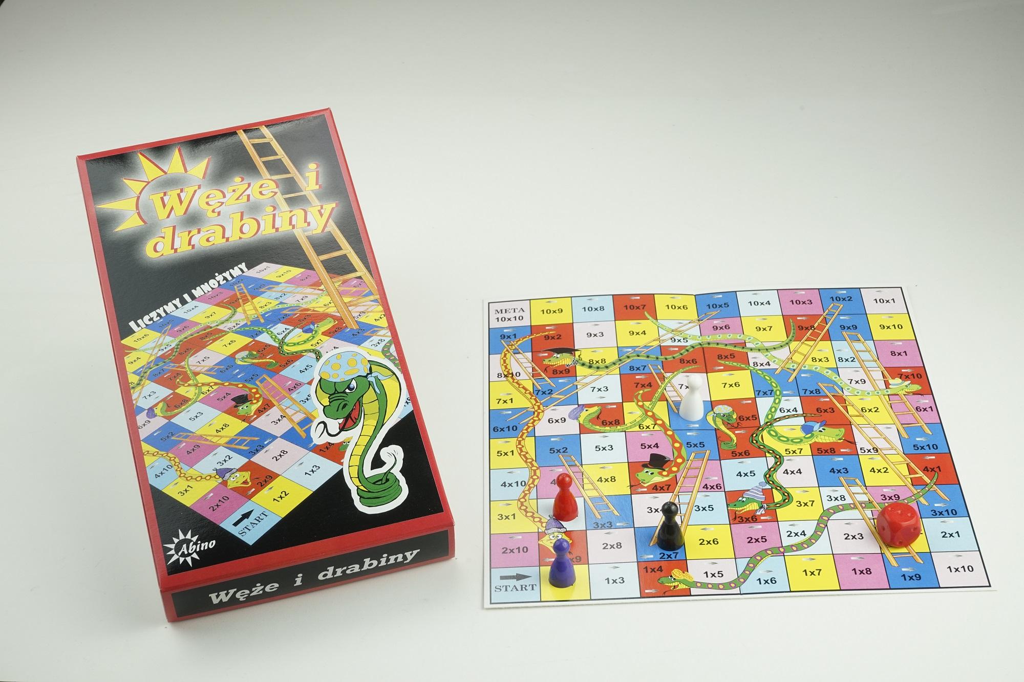 Bardzo lubiana przez dzieci gra wzbogacona o zasady, które pozwalają opanować w łatwy i szybki sposób tabliczkę mnożenia. Doskonali technikę liczenia w zakresie do stu, usprawnia pamięć słuchową oraz ćwiczy orientację przestrzenną z uwzględnieniem pojęć nad i pod. SUGEROWANY WIEK GRACZY: 5-99 lat LICZBA GRACZY: 2 – 4 ORIENTACYJNY CZAS GRY : 20 minut ZAWARTOŚĆ: – plansza – 4 pionki – kostka