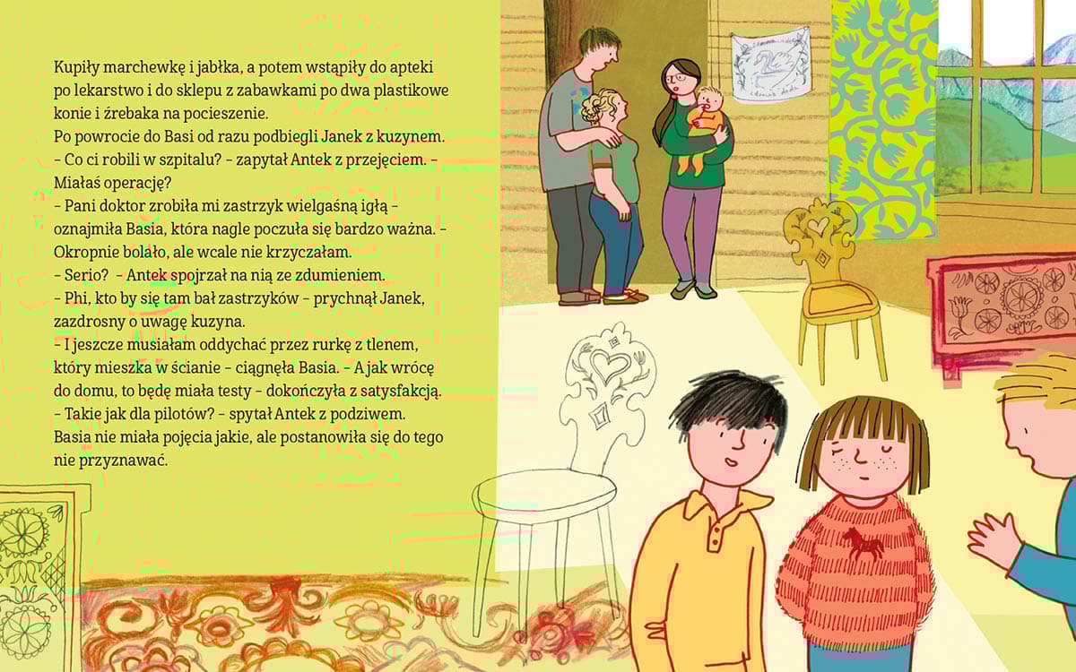 Siedem opowieści o Basi i jej rodzinie. Siedem sytuacji z ich życia, czasem śmiesznych, czasem trudnych: nowy kolega z innego kraju, pojawienie się opiekunki, gotowanie z tatą, podróż z mamą, biwak pod namiotem, wakacje na wsi, a na deser – wyprawa na plac zabaw.