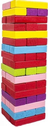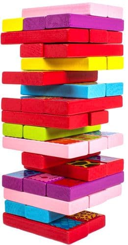 W pudełku znajdziesz kość i 52 kolorowe klocki, które posłużą ci do budowania tradycyjnej wieży, gry w domino i memo. Wiek graczy: 3+ Liczba graczy: 2+ Czas rozgrywki: 20 minut