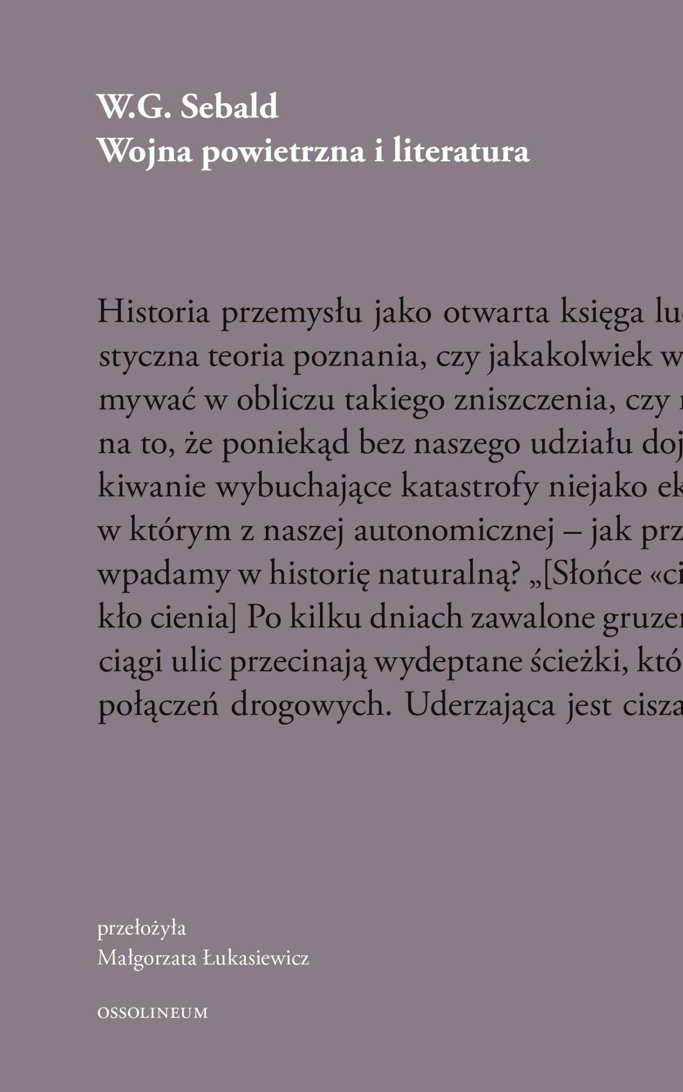 Wojna powietrzna i literatura W.G. Sebald Książka