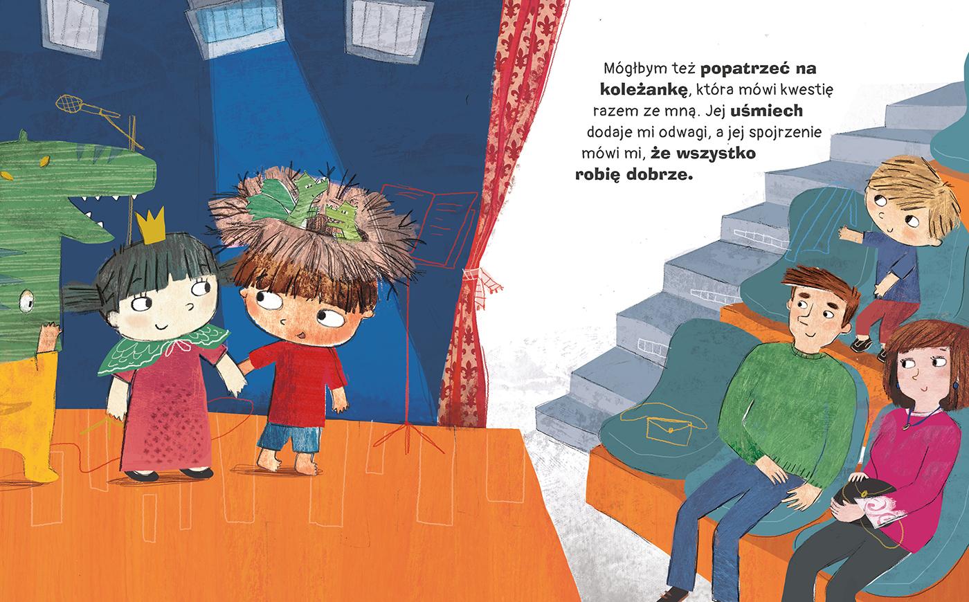 Julek, główny bohater książeczki podsuwa pięć zabawnych i kreatywnych sposobów, jak poradzić sobie z nieśmiałością. Bez trudu może je wykorzystać każde dziecko. Publikację wyróżniają świetne ilustracje, naśladujące dziecięce rysunki, które ułatwiają małemu czytelnikowi utożsamienie się z bohaterem. Skupiają one uwagę dzieci i pomagają odnaleźć się w onieśmielających sytuacjach. Książka jest skierowana również do rodziców – na ostatnich stronach znajdą fachowe porady dr Chiary Piroddi, psycholożki specjalizującej się w terapii poznawczo-ewolucyjnej. Jasne i praktyczne wskazówki ekspertki są pełne cennych podpowiedzi, jak wspierać nieśmiałe dziecko. Pozostałe tytuły w serii Z poradnika smyka: Jak poradzić sobie ze złością? Boisz się lekarza? Jak pokochać bobasa? Jak nie bać się ciemności? Pierwszy dzień w przedszkoluSzczegółowe informacje na temat książki Z poradnika smyka Jesteś nieśmiały?