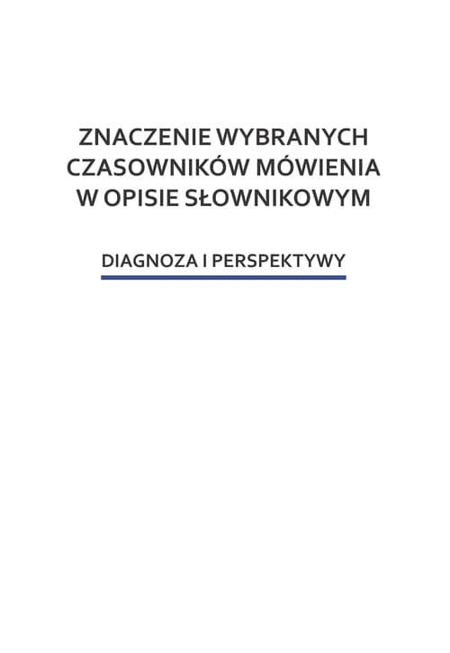 Znaczenie wybranych czasowników mówienia w opisie słownikowym Diagnoza i perspektywy Książka
