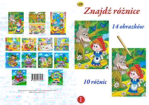 Zeszyt formatu A4 , 14 stron. Na każdej stronie znajdują się 2 obrazki różniące się między sobą 10 szczegółami. Rozwija spostrzegawczość i koncentrację. Zeszyt przeznaczony dla najmłodszych.